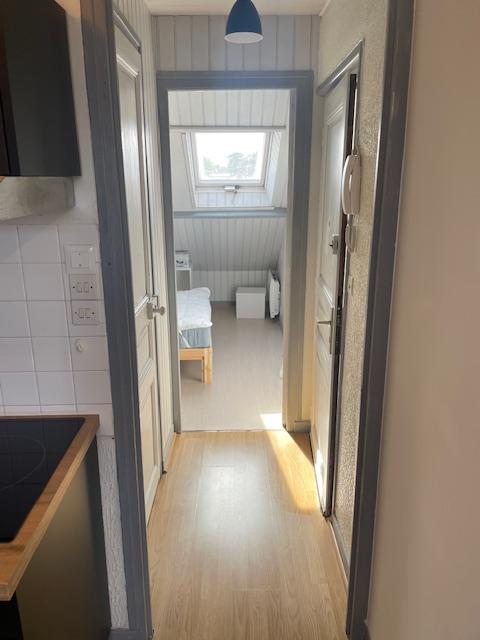 Entrée, Cuisine aménagée équipée (hotte -four -plaques) ouverte sur séjour, couloir, placard, wc, salle d’eau deux chambres dont une petite.